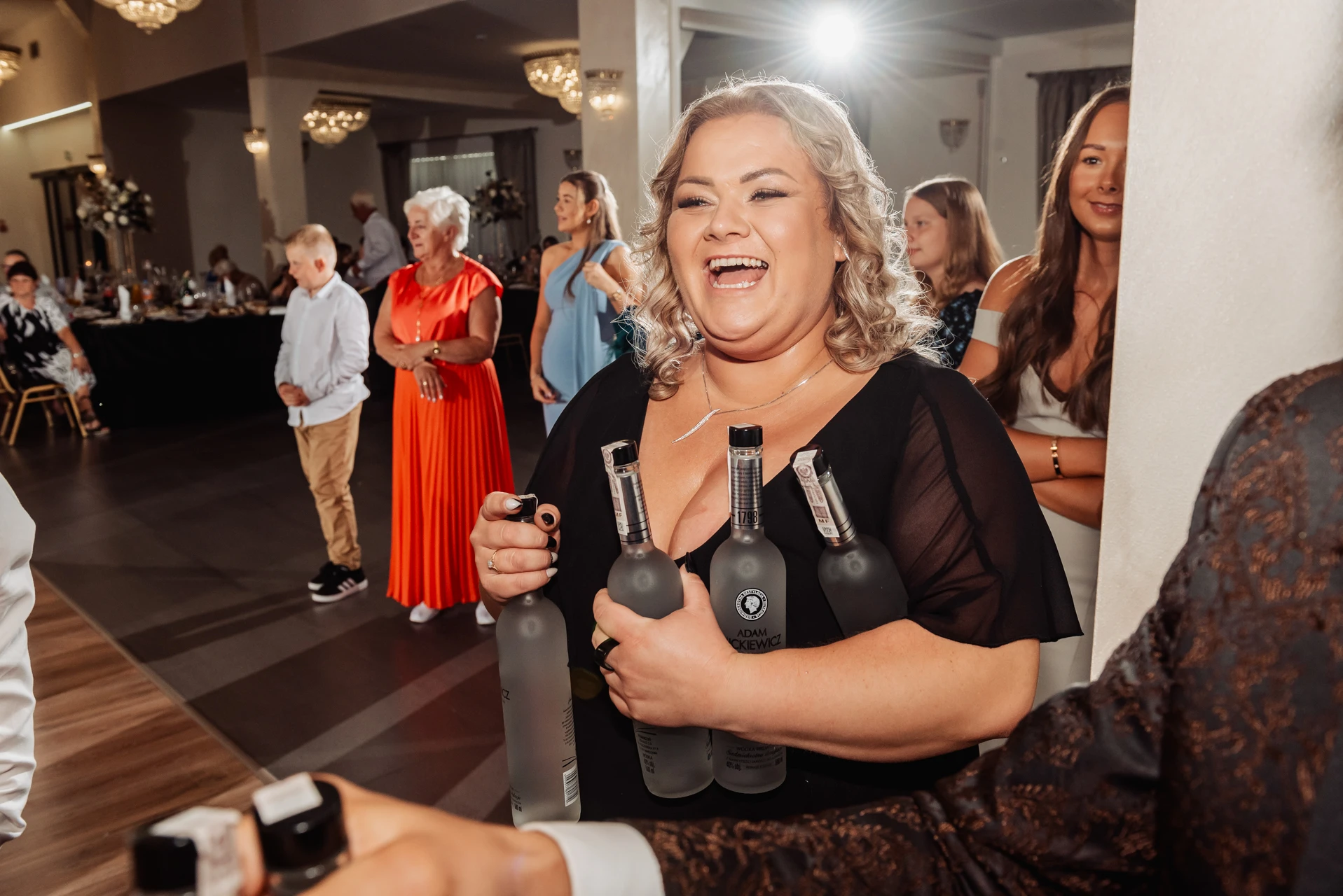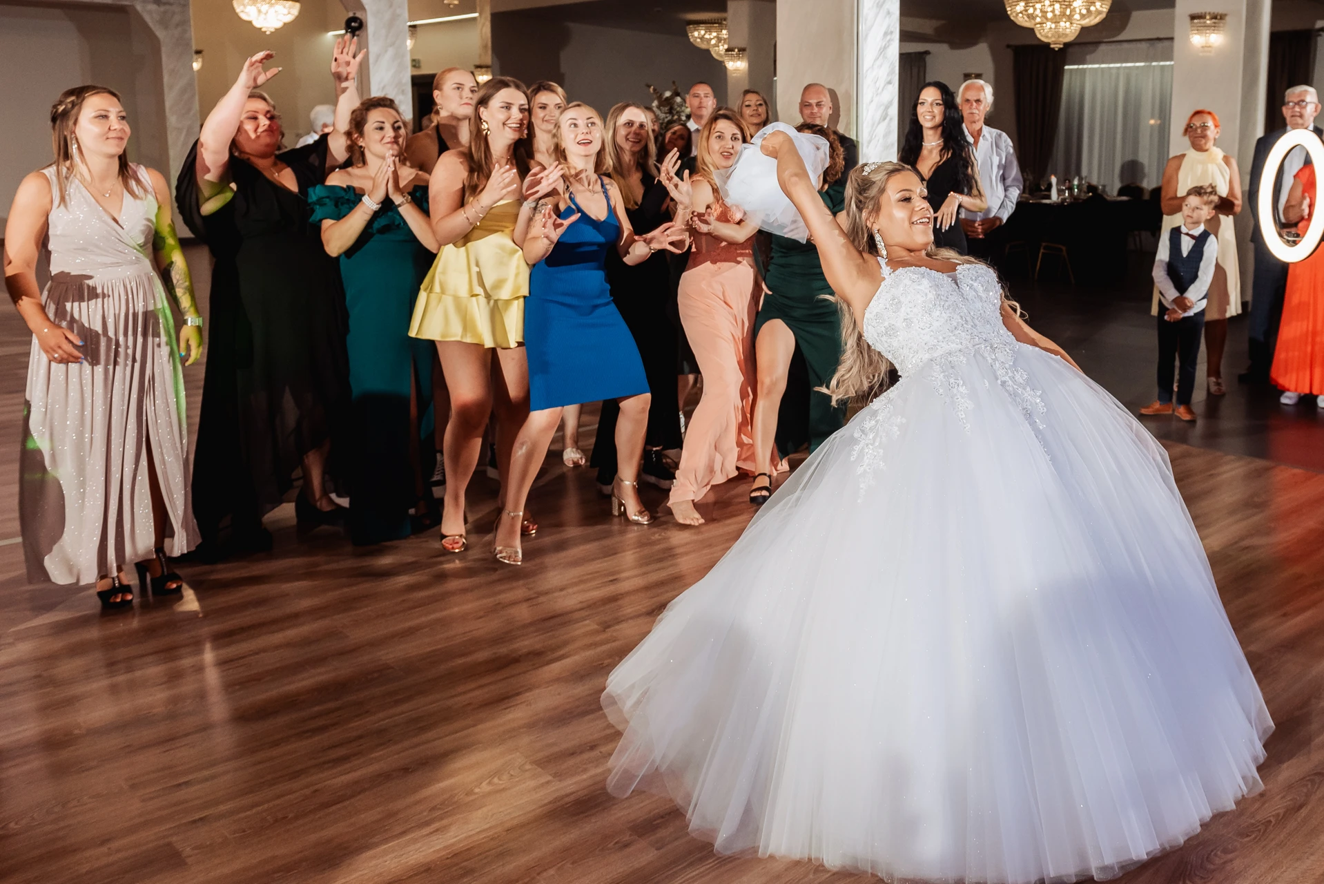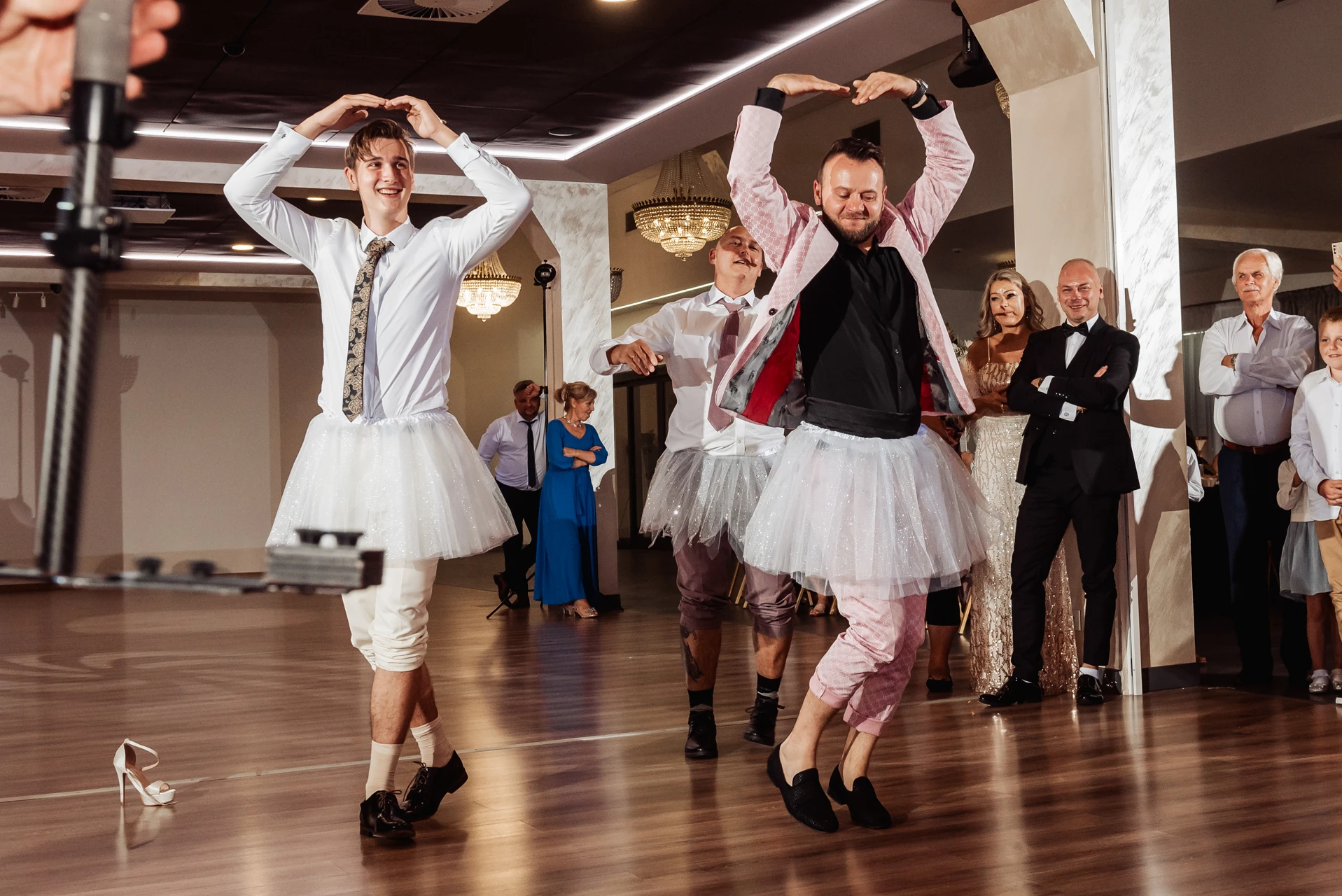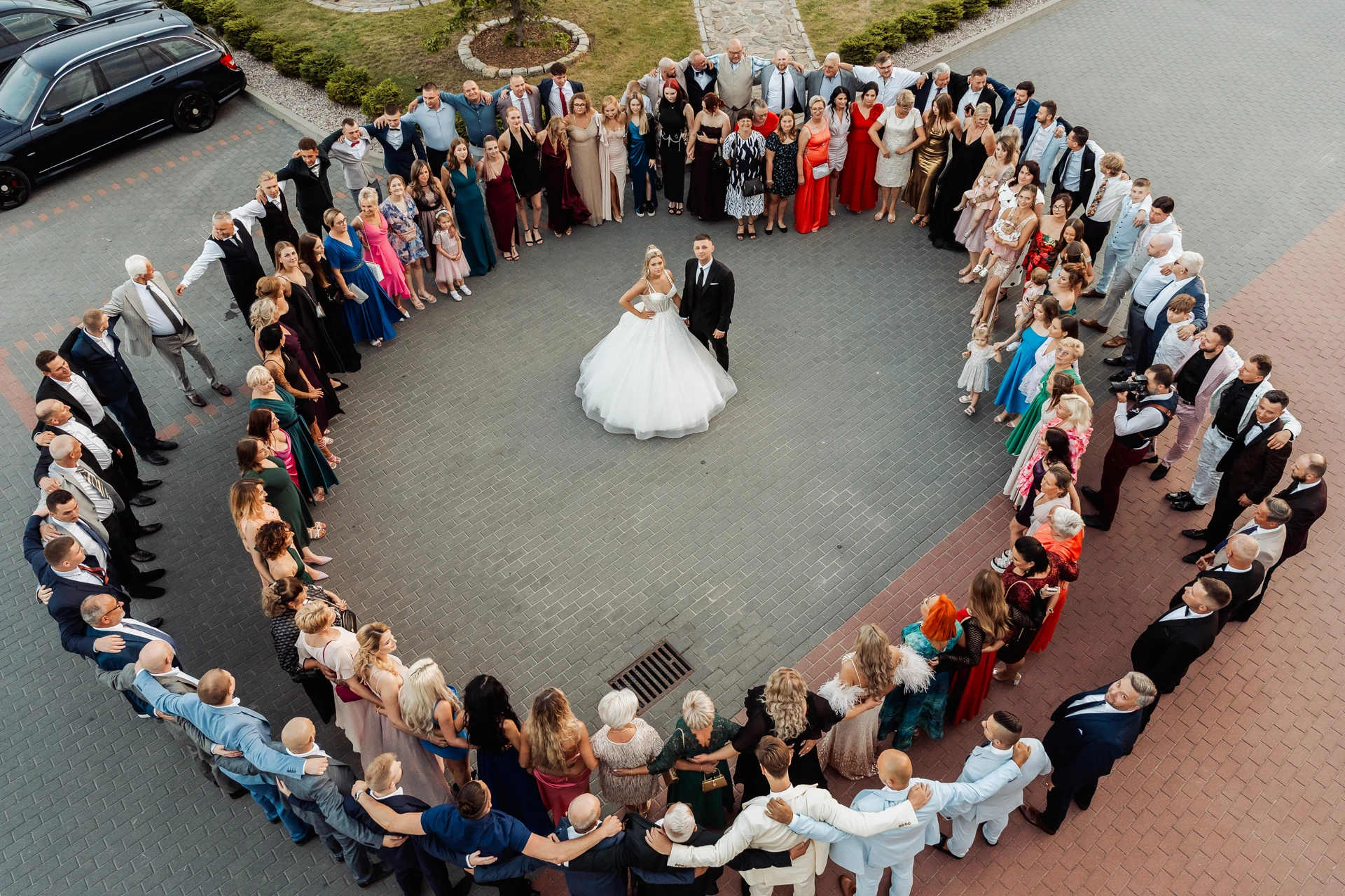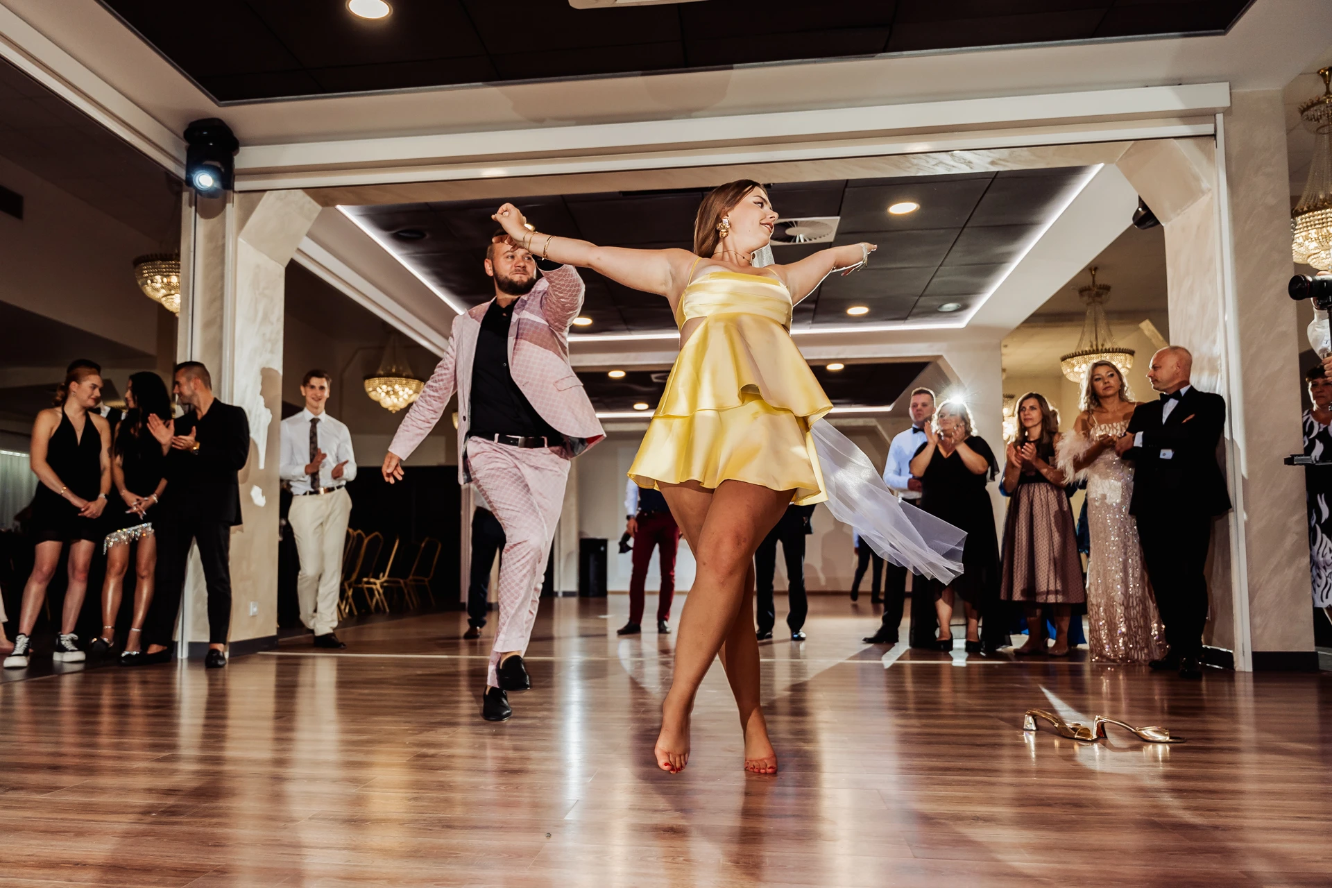 Pierwszy taniec Patrycji i Patryka odbył się w kłębach ciężkiego dymu, co stworzyło bajkowy efekt. Goście patrzyli z zachwytem, a ich radość i miłość były widoczne w każdym geście.