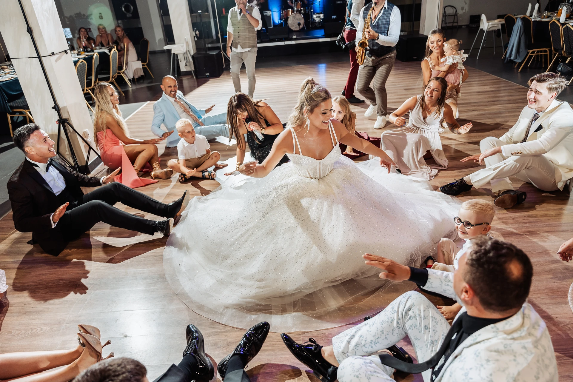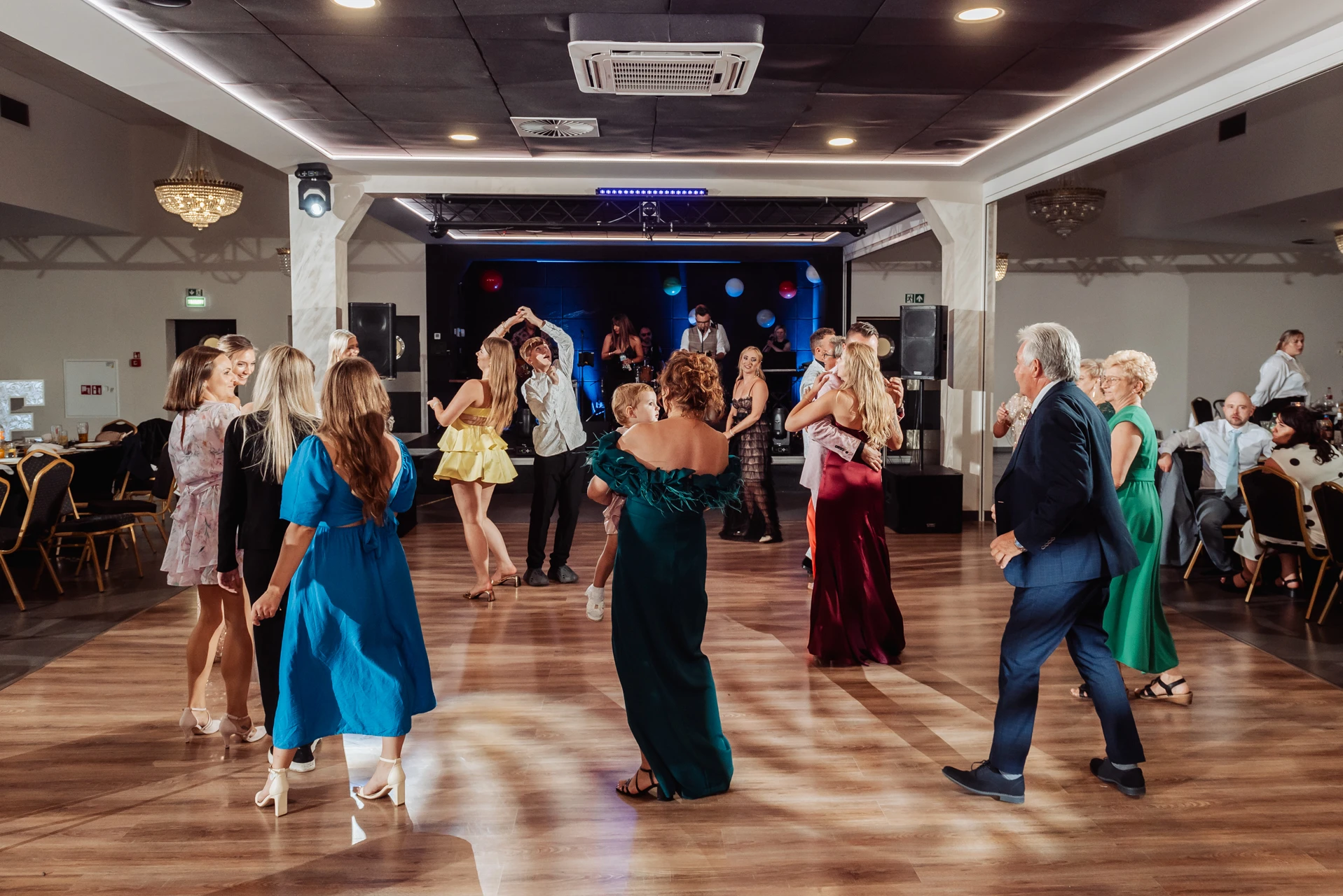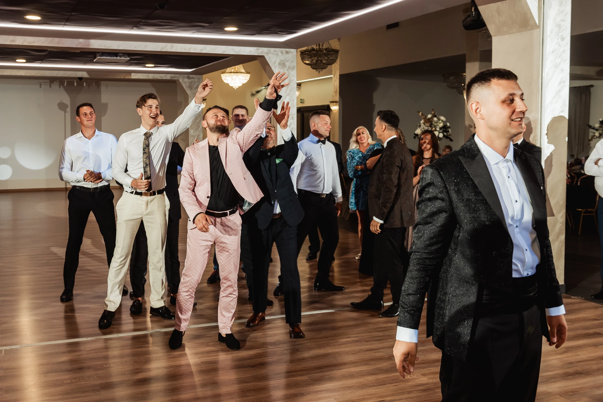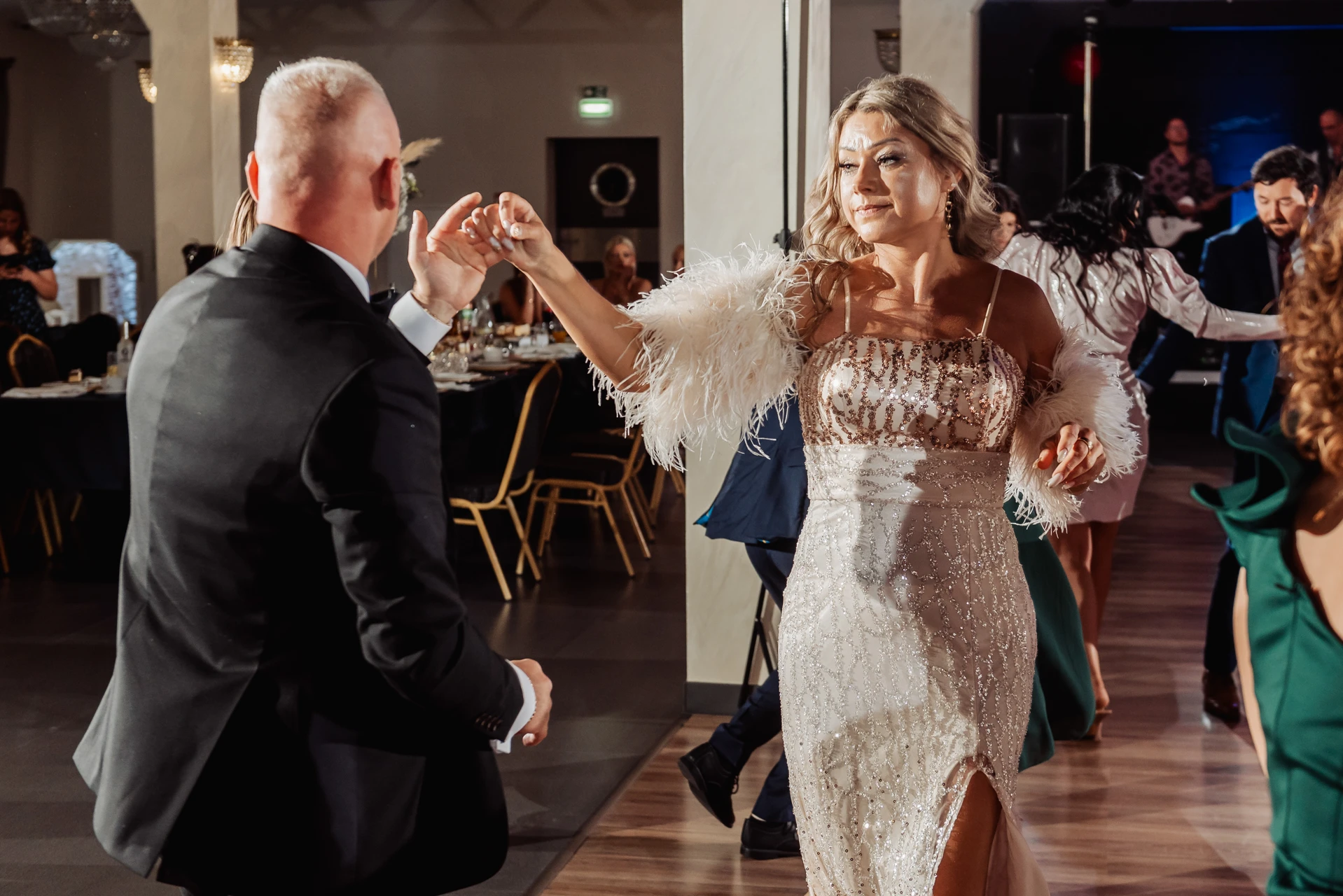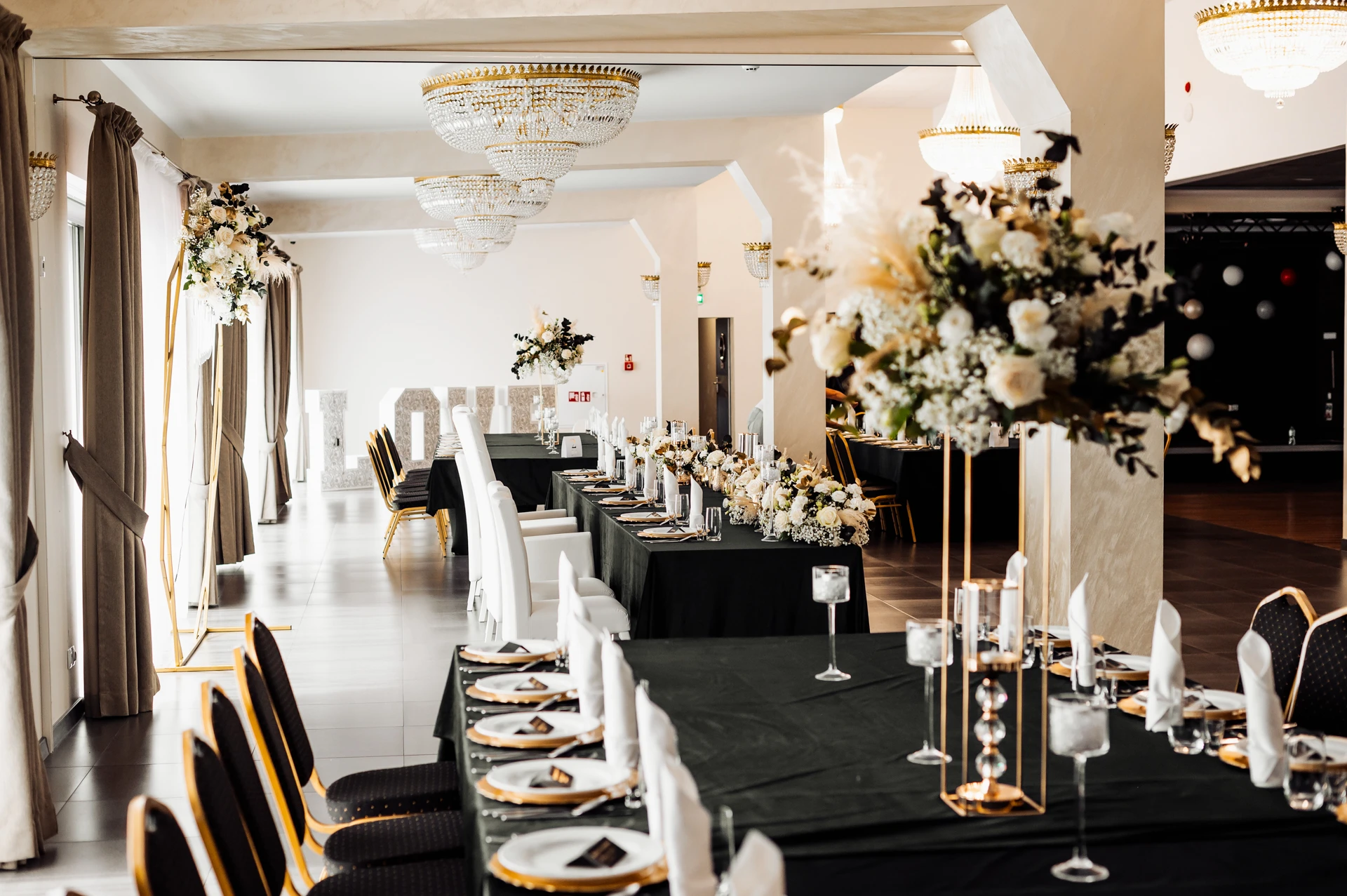 Sala weselna olśniewała luksusem – kryształowe żyrandole, złote akcenty i dopracowane detale sprawiły, że goście czuli się jak na królewskim przyjęciu. Wesele w stylu glamour to nie tylko estetyka, ale także wyjątkowa atmosfera – pełna radości i emocji.