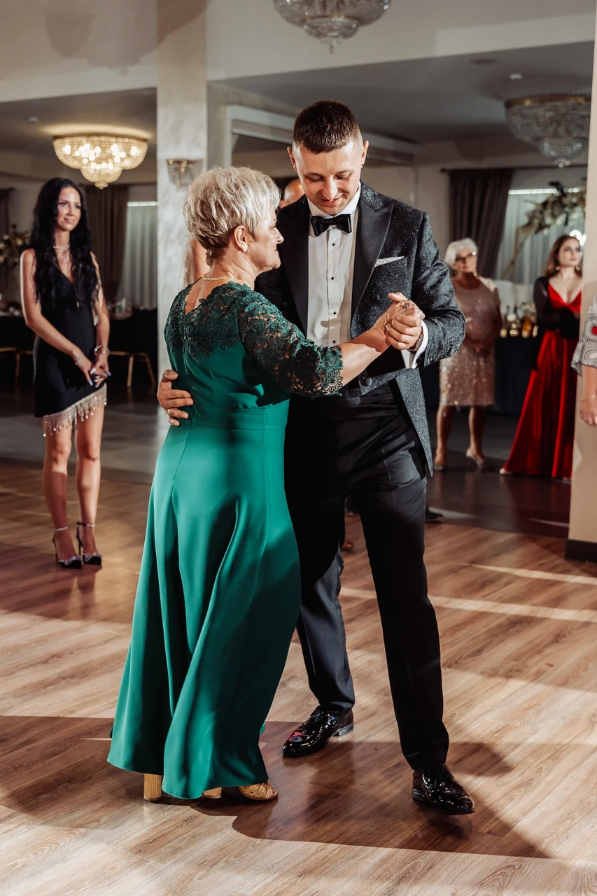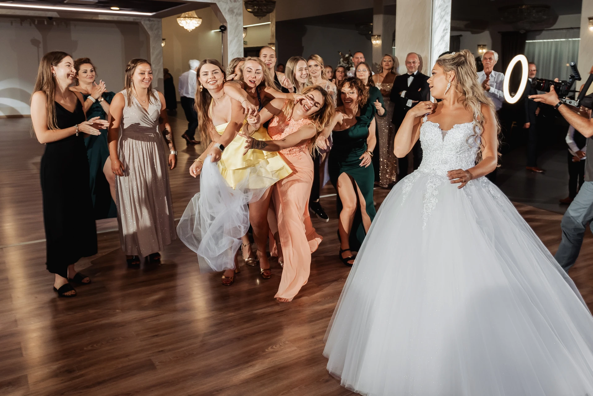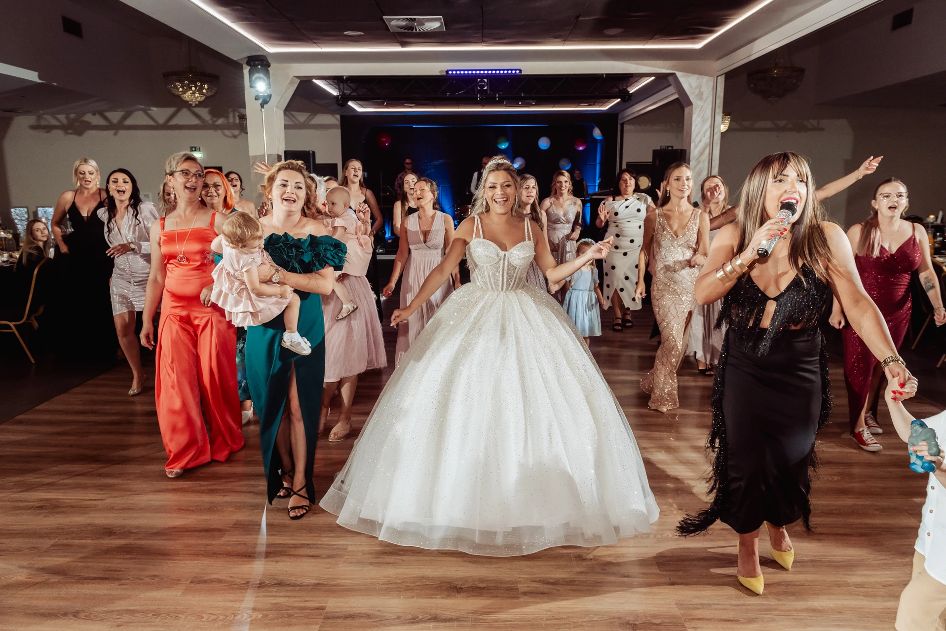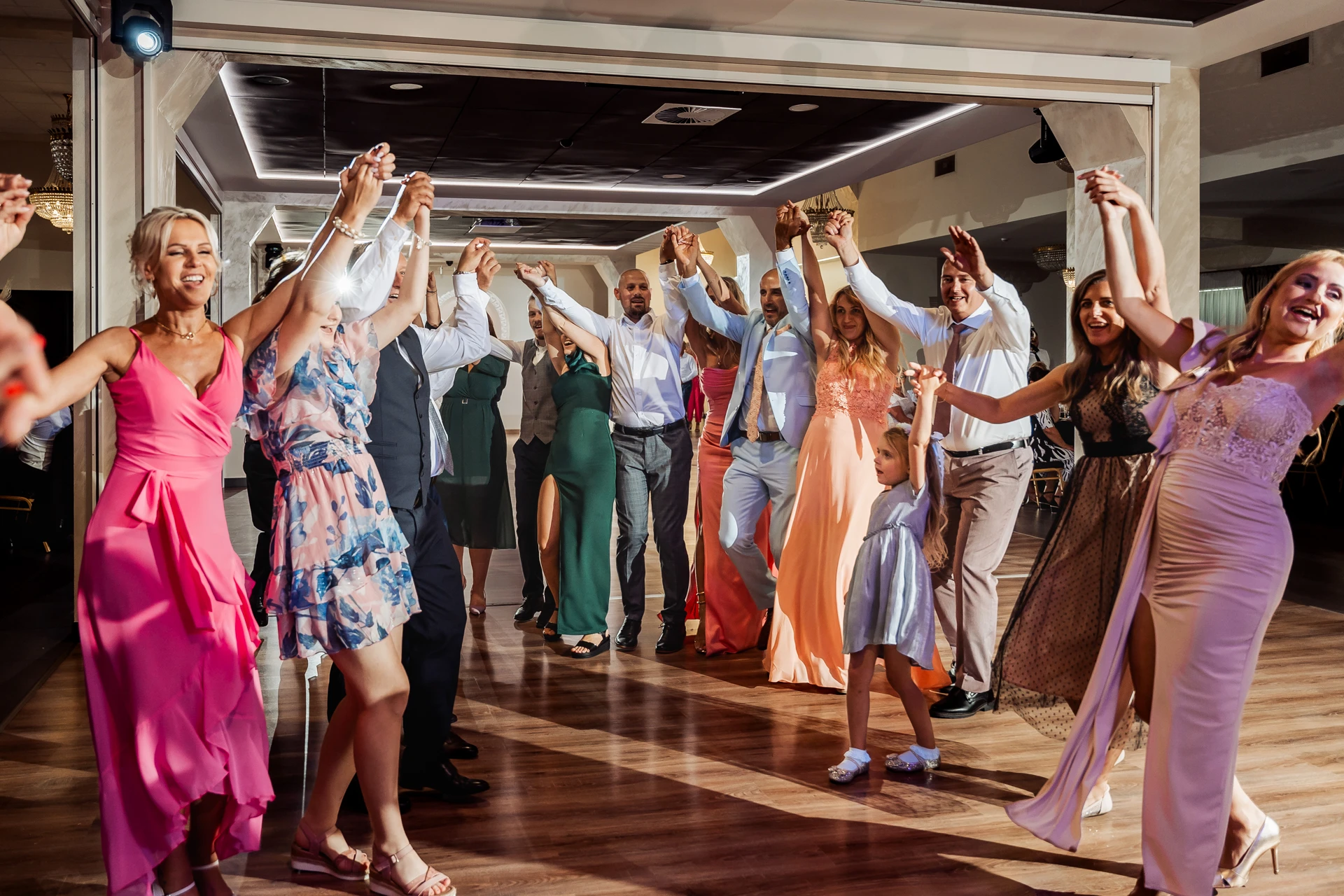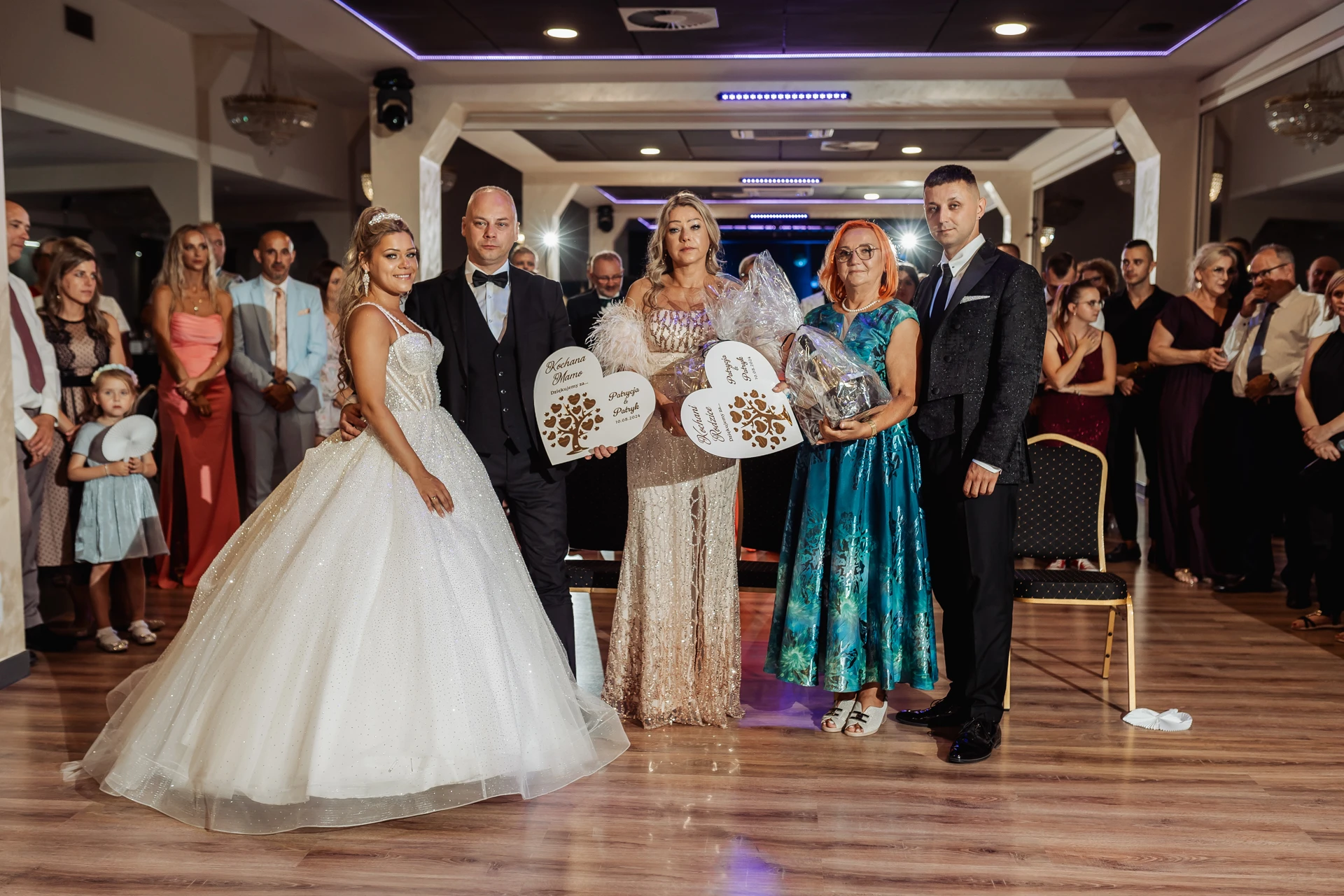 Sala weselna olśniewała luksusem – kryształowe żyrandole, złote akcenty i dopracowane detale sprawiły, że goście czuli się jak na królewskim przyjęciu. Wesele w stylu glamour to nie tylko estetyka, ale także wyjątkowa atmosfera – pełna radości i emocji.