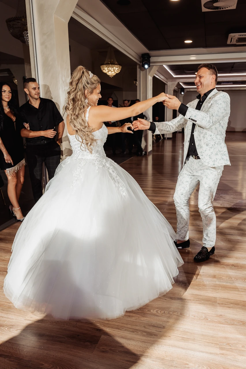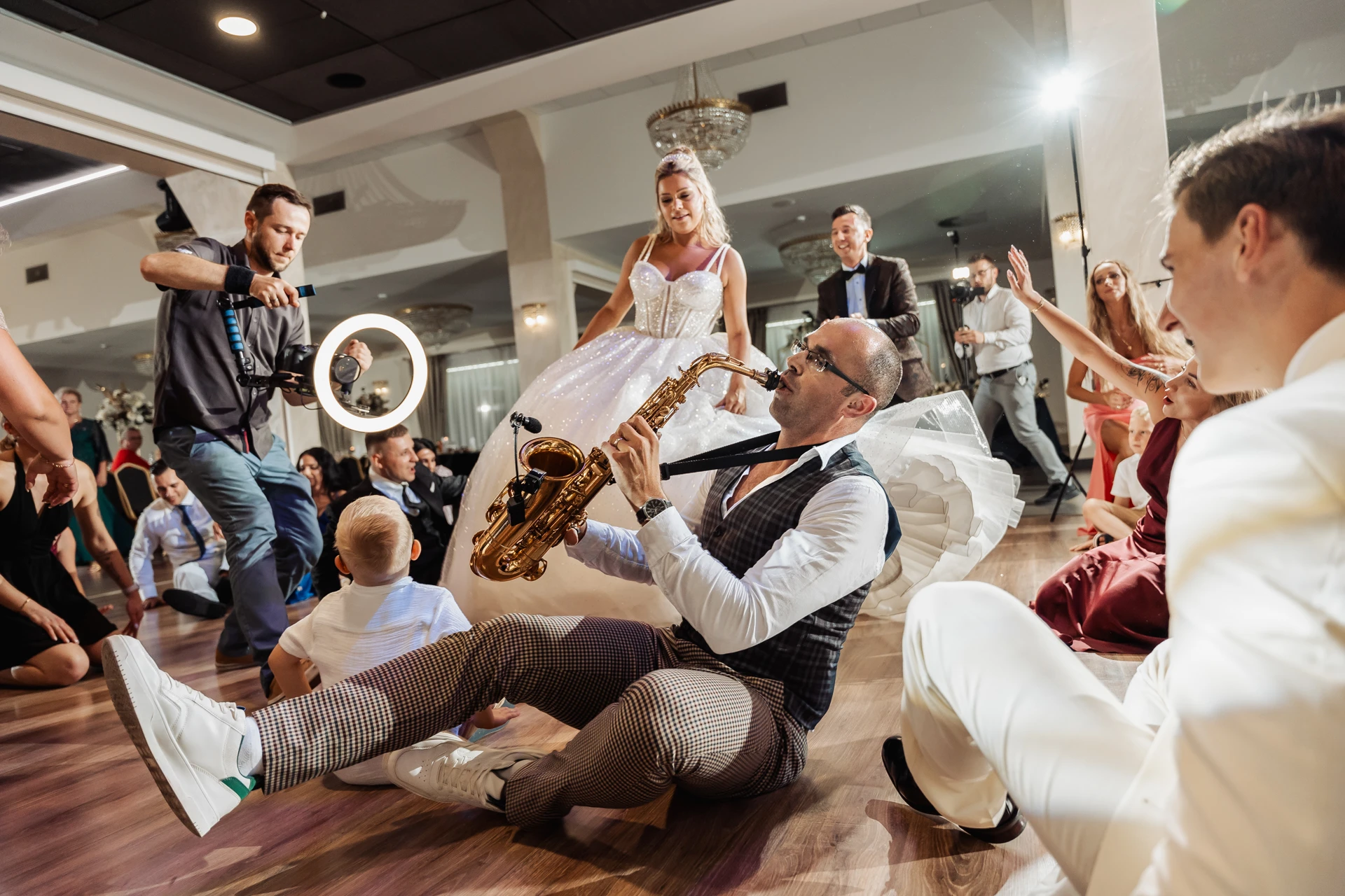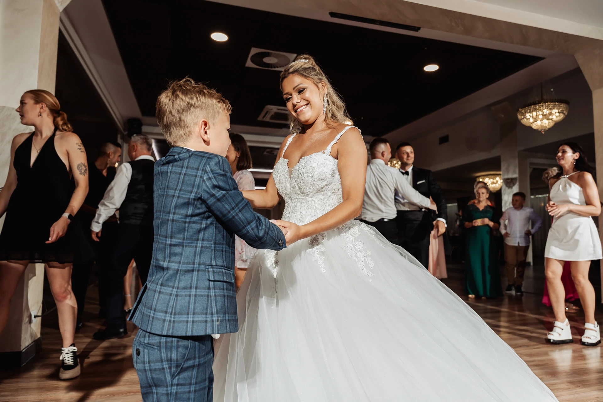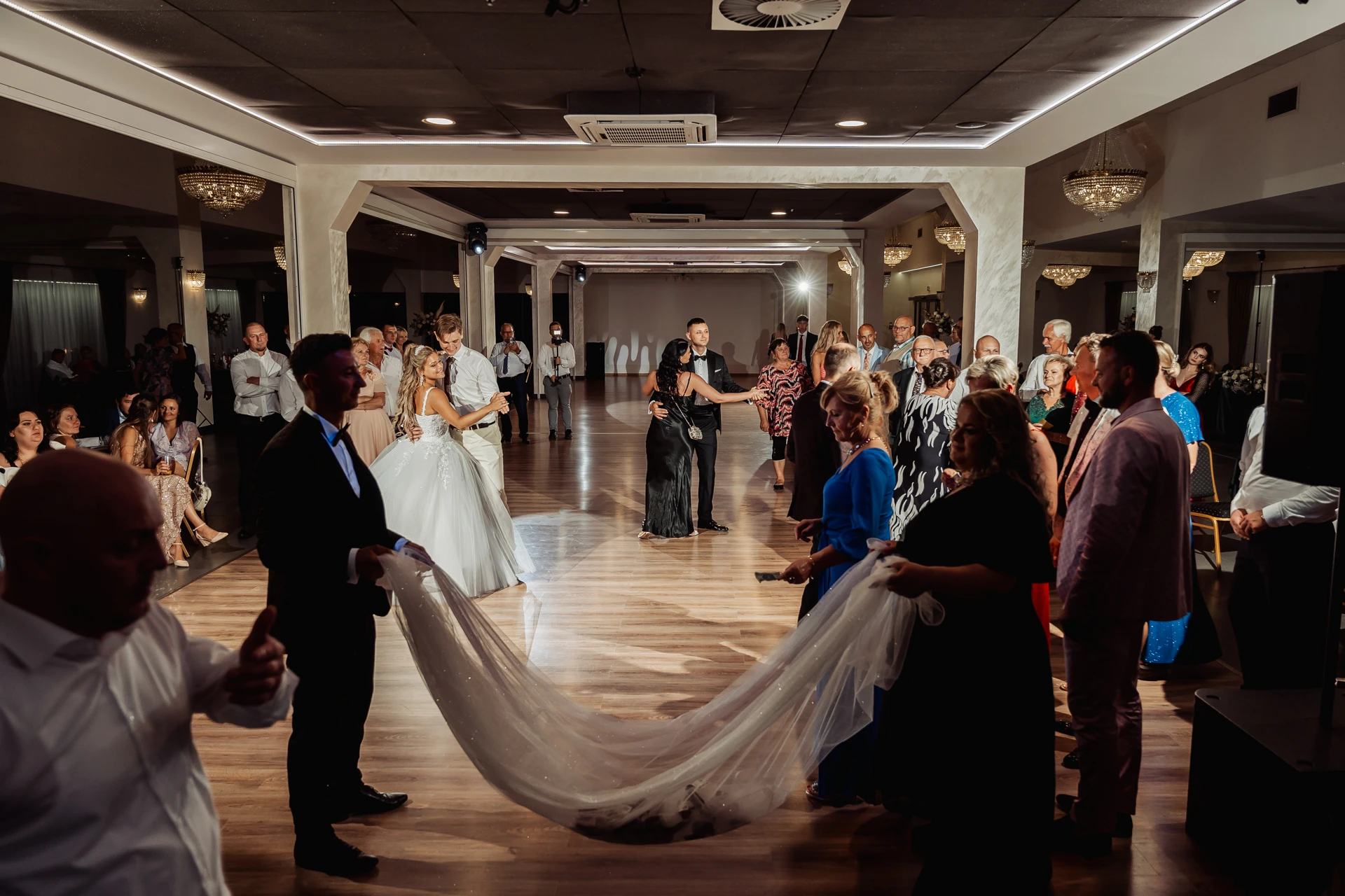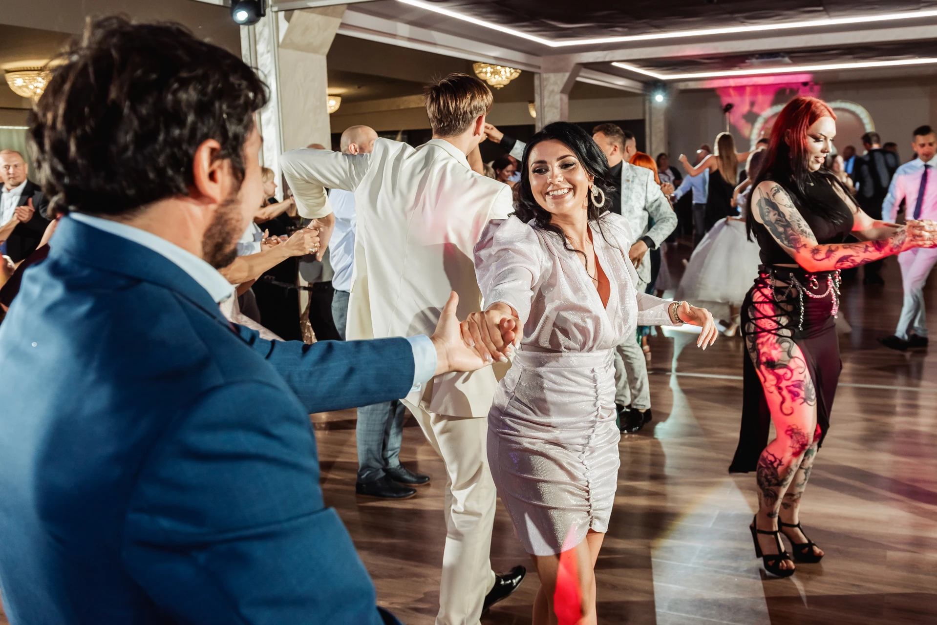 Sala weselna olśniewała luksusem – kryształowe żyrandole, złote akcenty i dopracowane detale sprawiły, że goście czuli się jak na królewskim przyjęciu. Wesele w stylu glamour to nie tylko estetyka, ale także wyjątkowa atmosfera – pełna radości i emocji.
