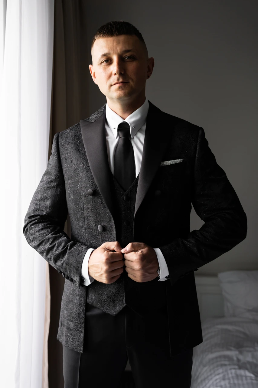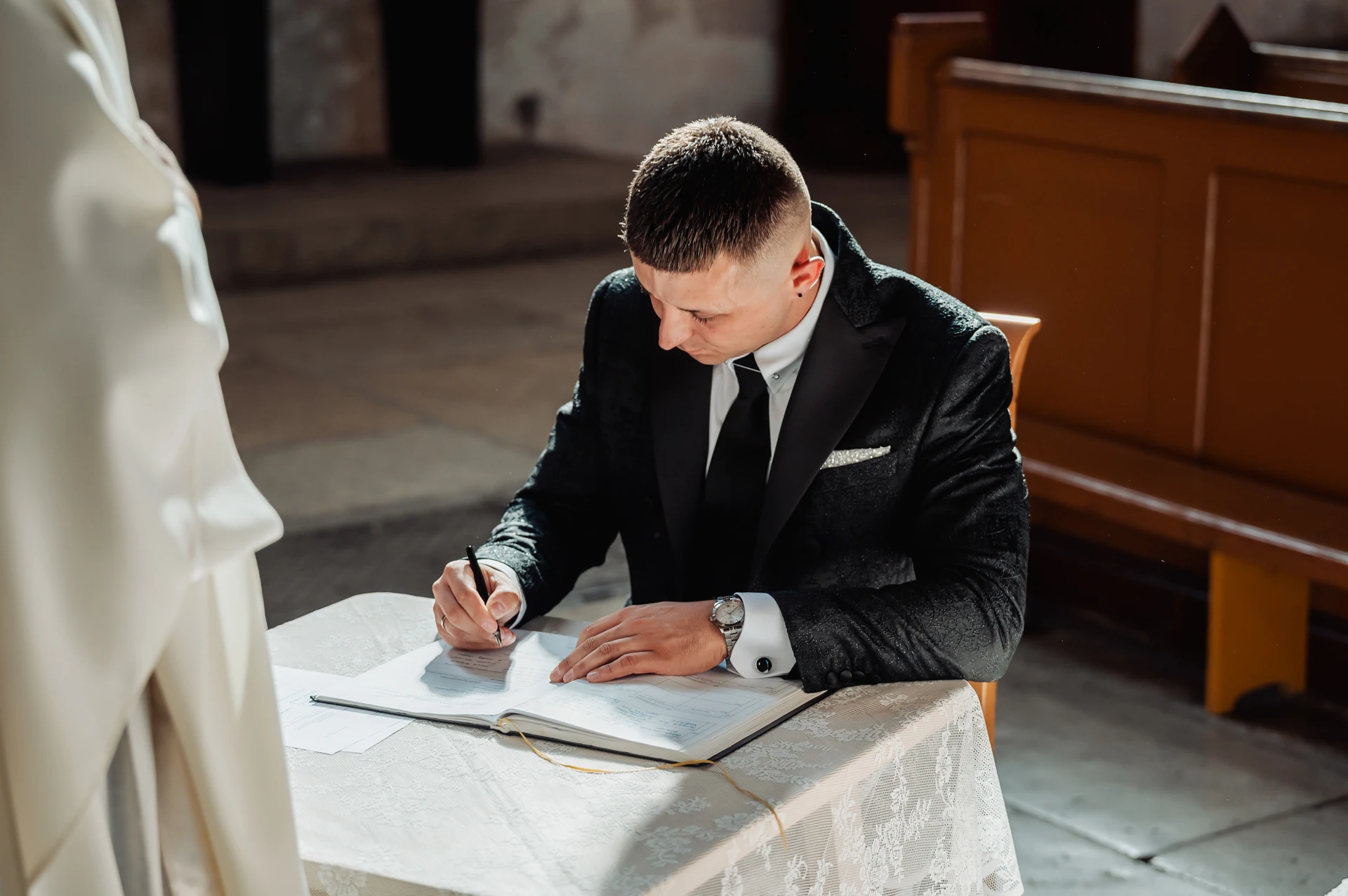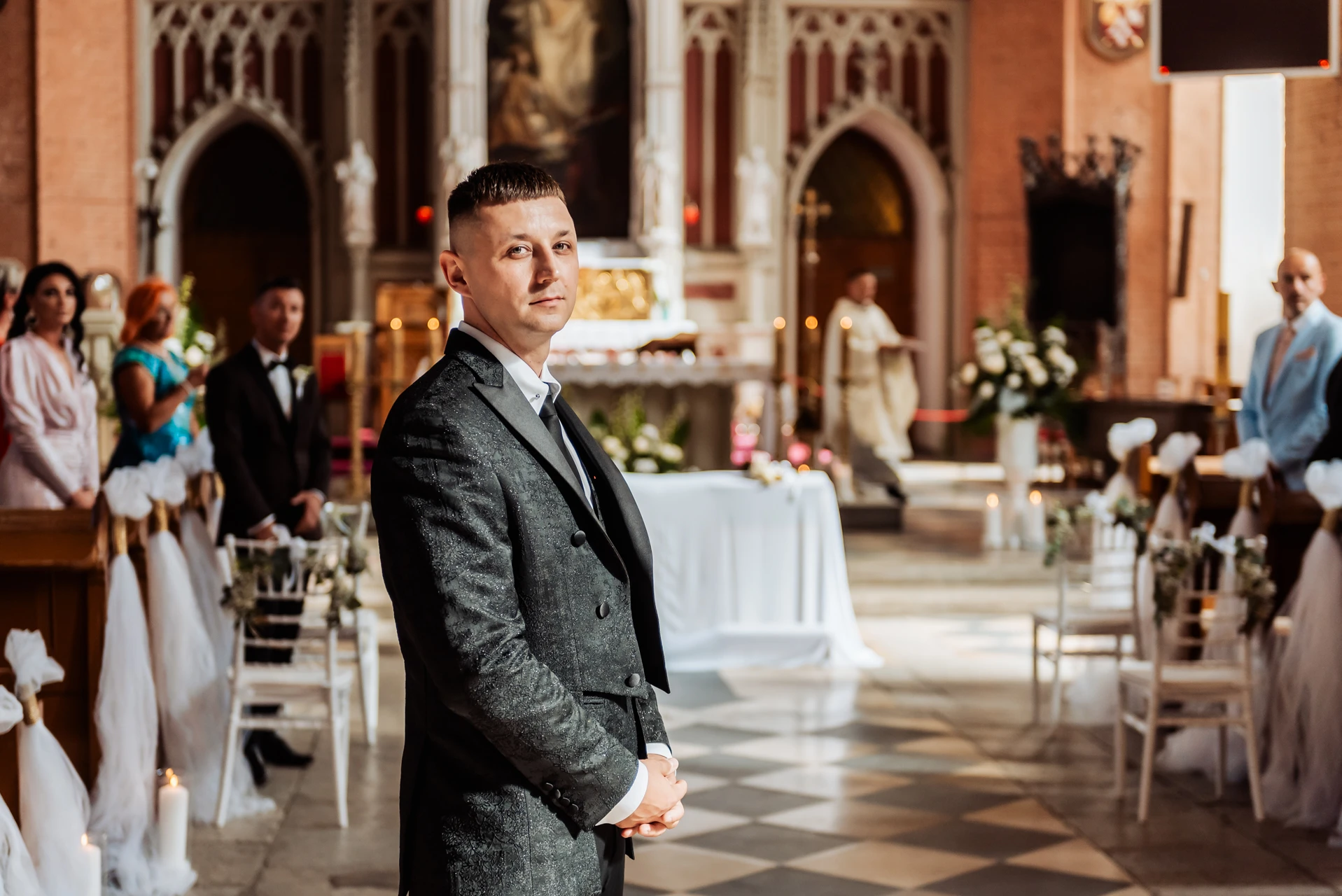 Patryk również zadbał o każdy szczegół – klasyczny czarny smoking, idealnie dobrane dodatki i nerwowe poprawianie mankietów. Widać było, że z niecierpliwością czeka na moment, gdy po raz pierwszy tego dnia zobaczy swoją przyszłą żonę.