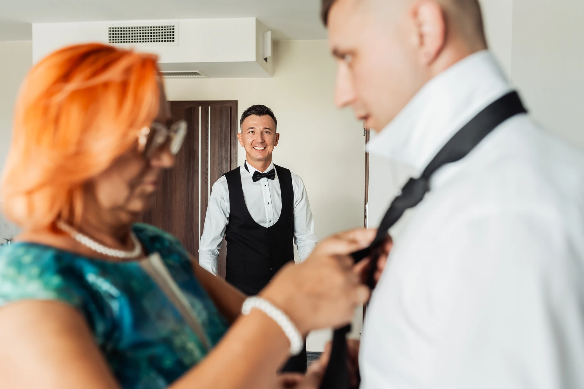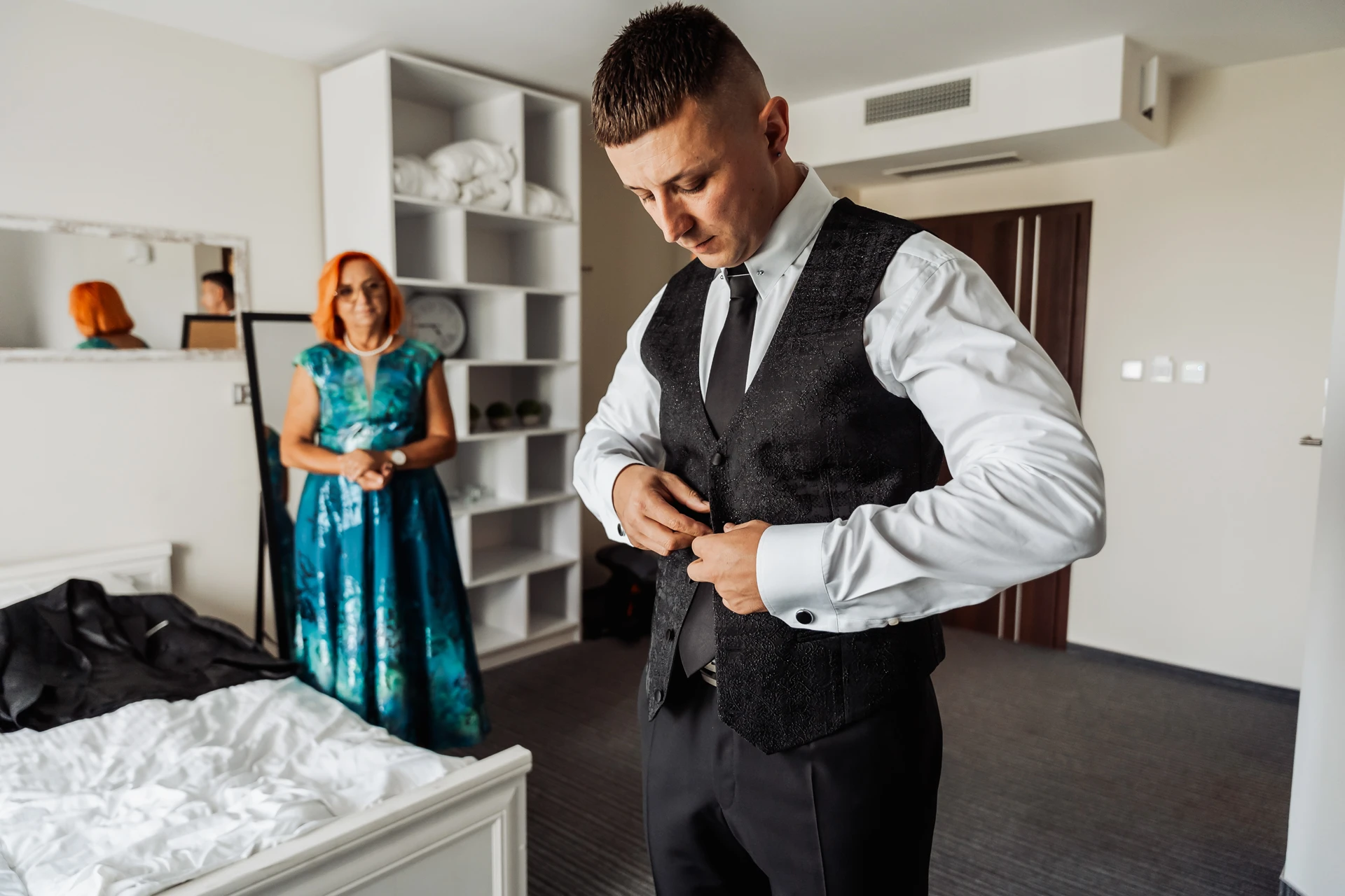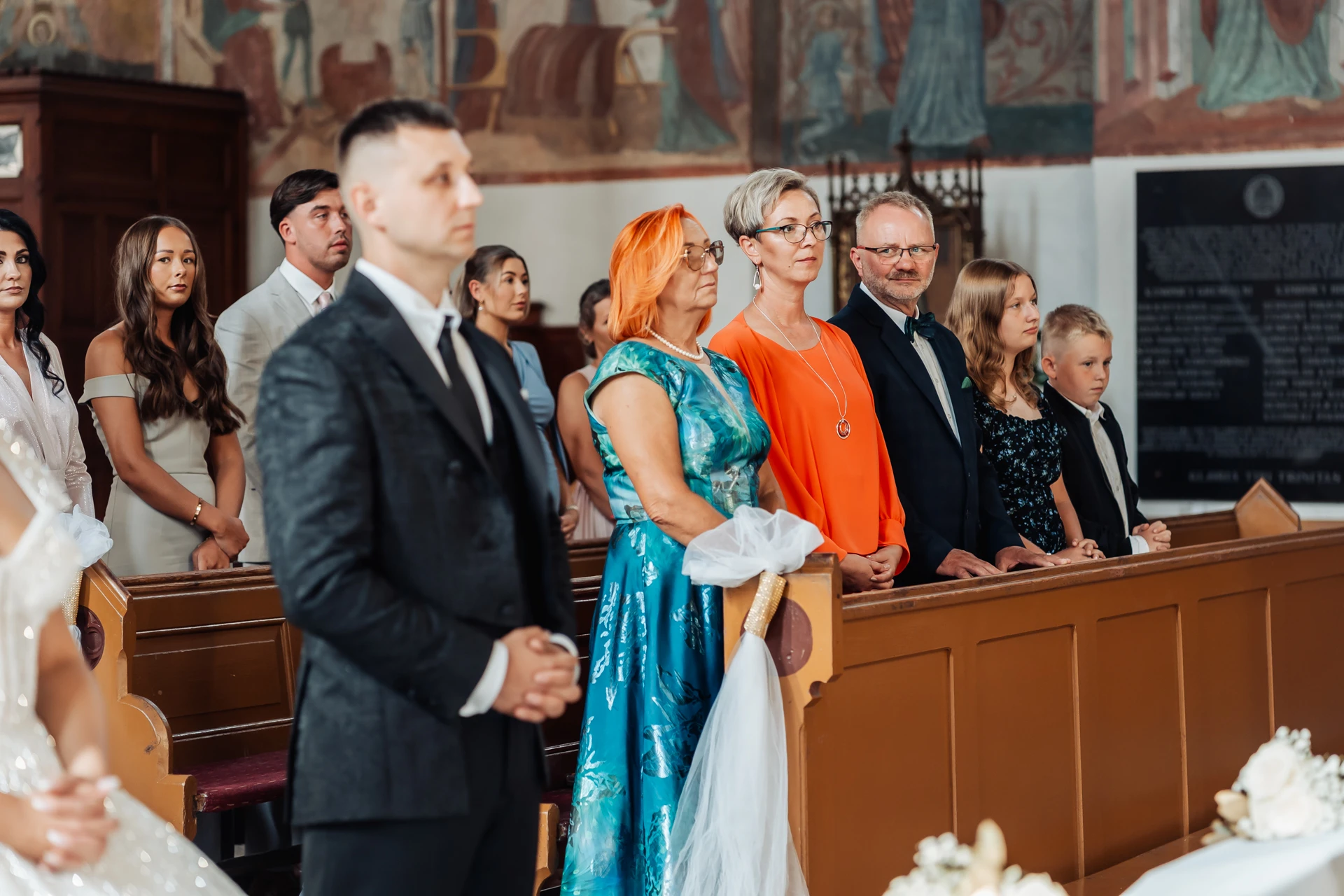 Patryk również zadbał o każdy szczegół – klasyczny czarny smoking, idealnie dobrane dodatki i nerwowe poprawianie mankietów. Widać było, że z niecierpliwością czeka na moment, gdy po raz pierwszy tego dnia zobaczy swoją przyszłą żonę.