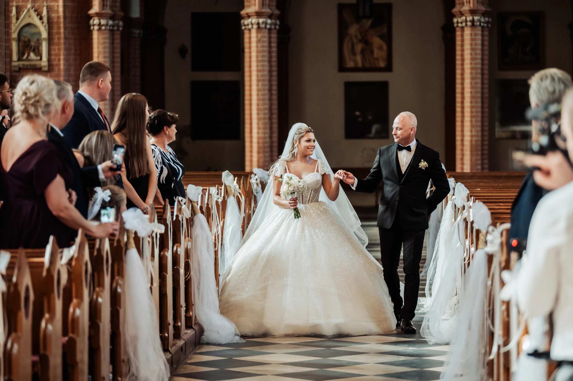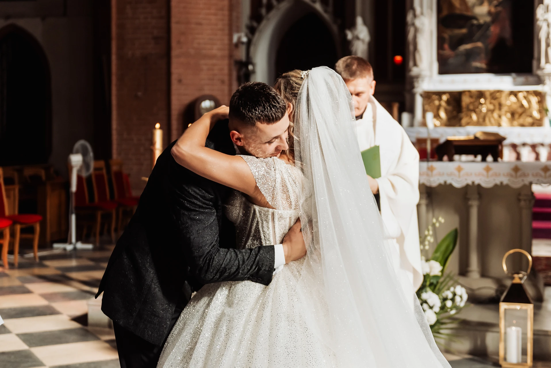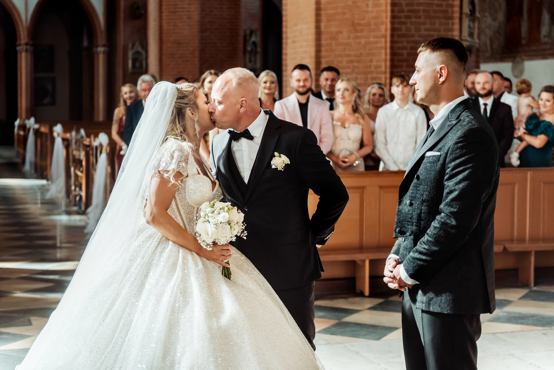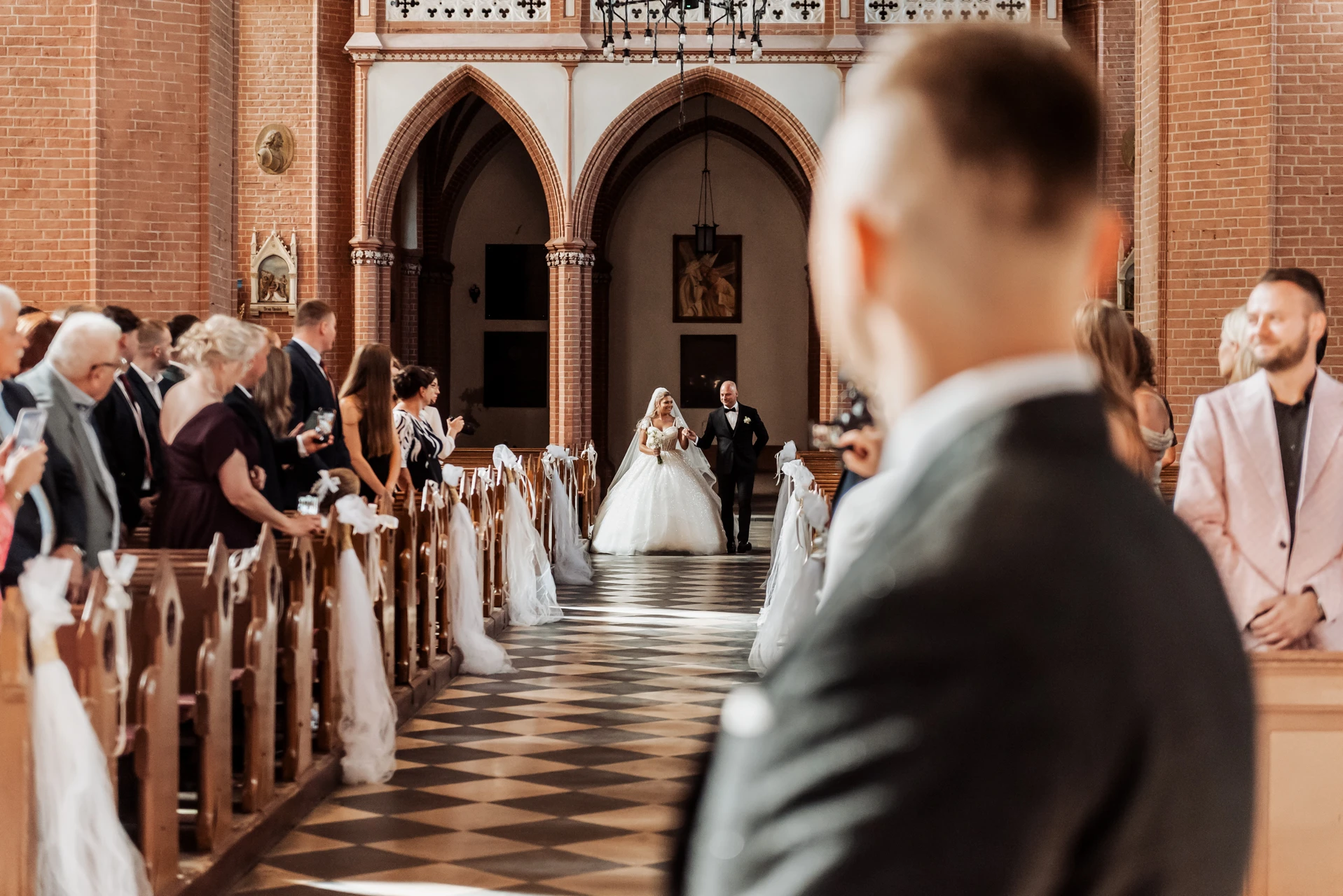 Kościół wypełniał delikatny blask świec i subtelna muzyka. Gdy Patrycja wkroczyła do świątyni, zapadła cisza. Patryk patrzył na nią, jakby widział ją po raz pierwszy – z podziwem i miłością.