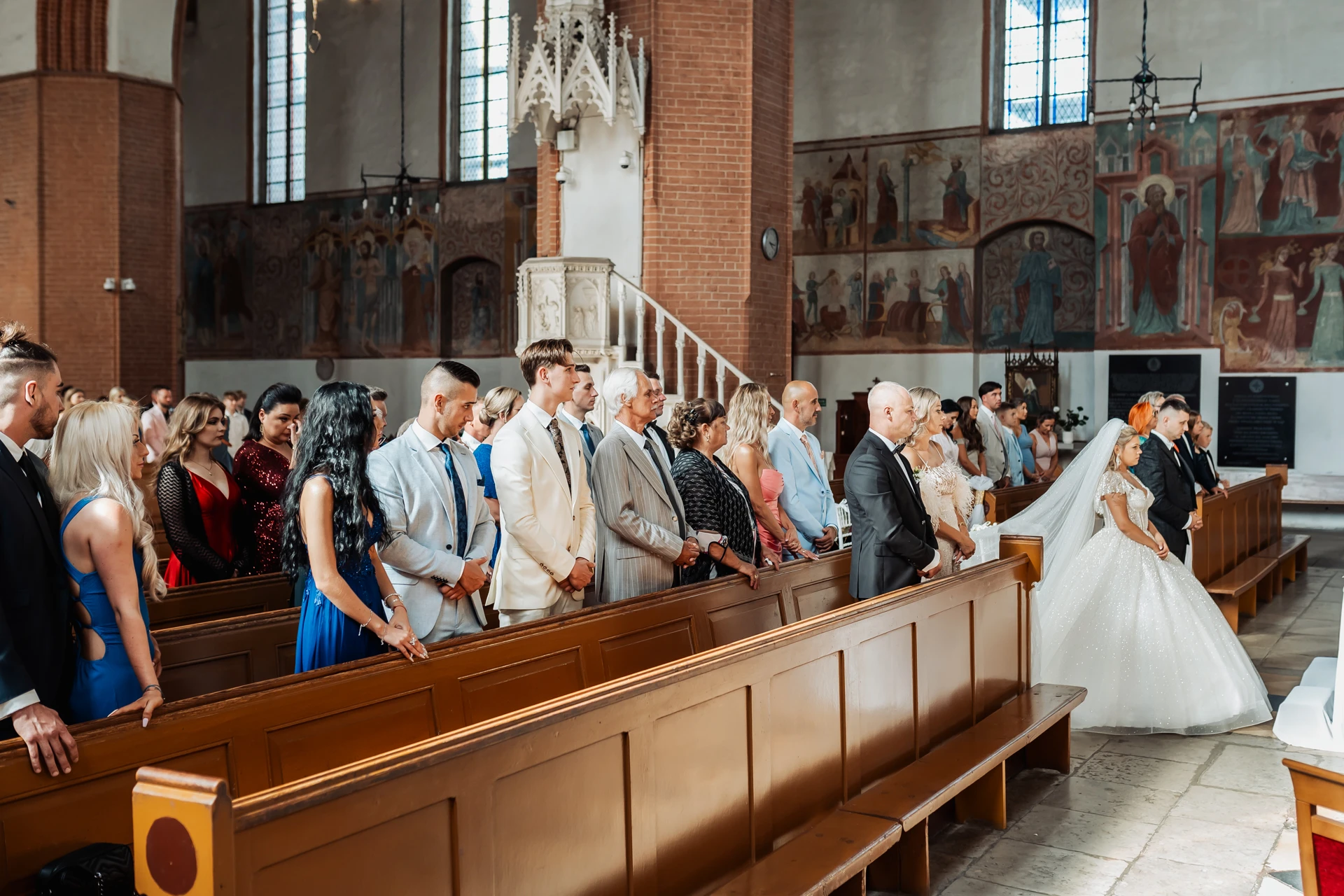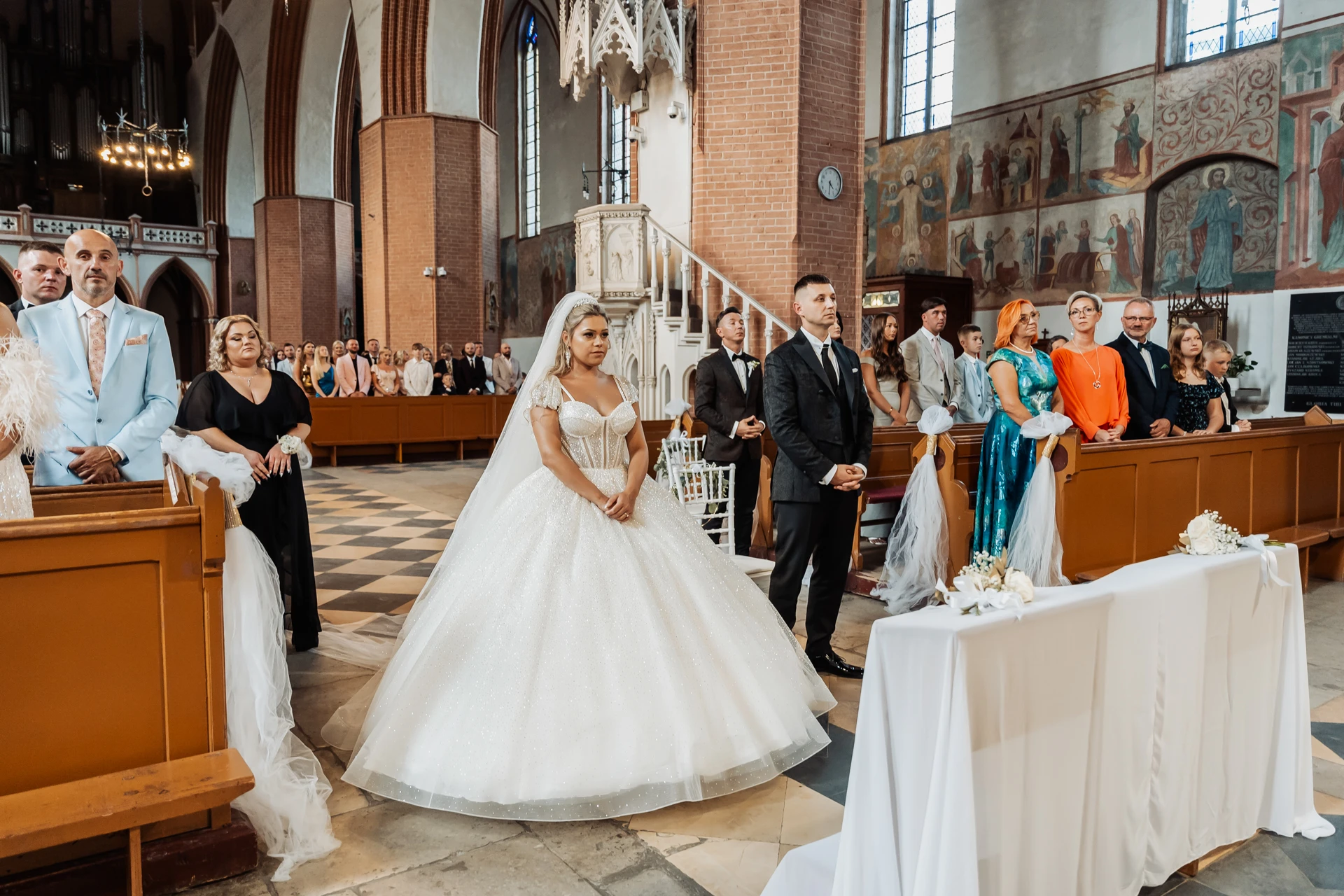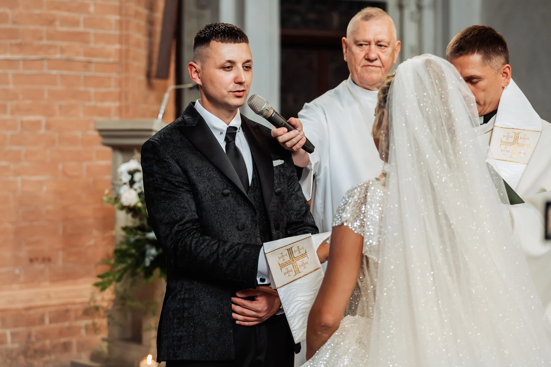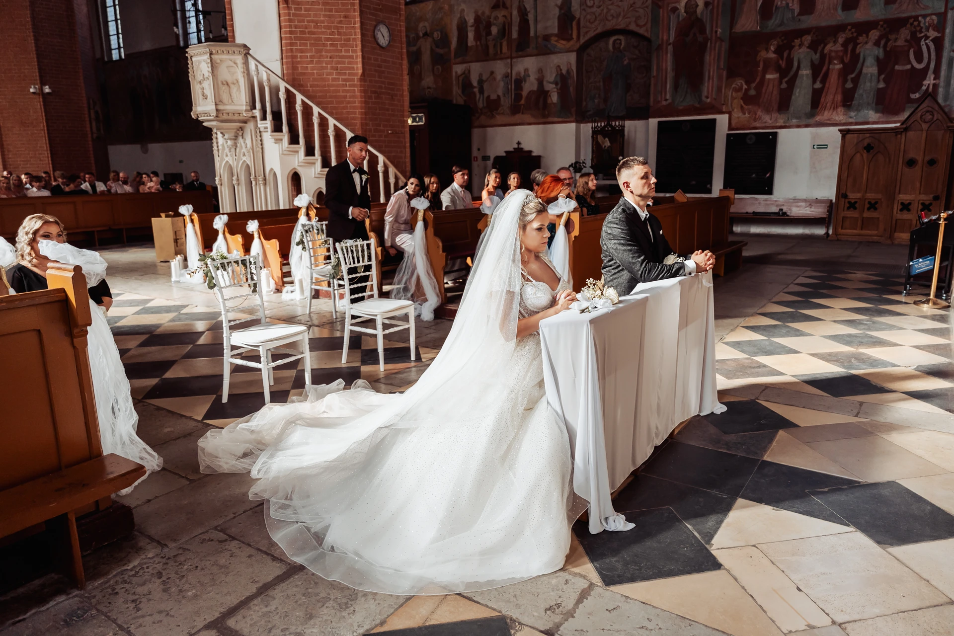 Kościół wypełniał delikatny blask świec i subtelna muzyka. Gdy Patrycja wkroczyła do świątyni, zapadła cisza. Patryk patrzył na nią, jakby widział ją po raz pierwszy – z podziwem i miłością.