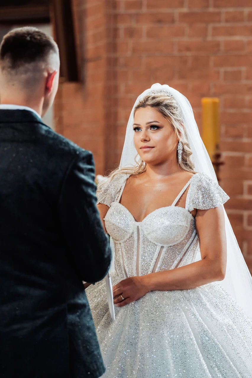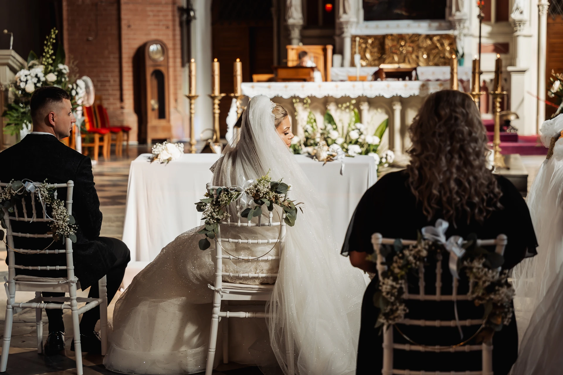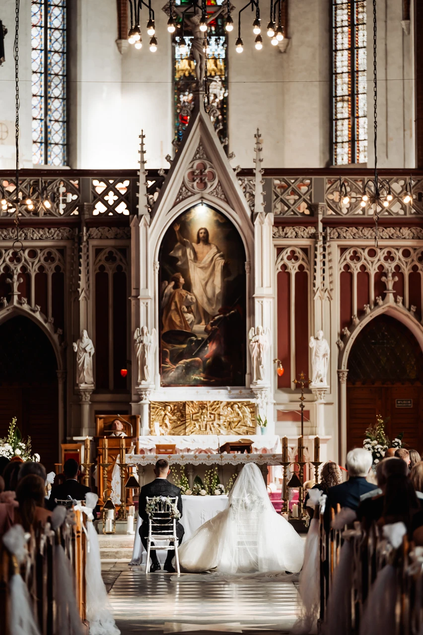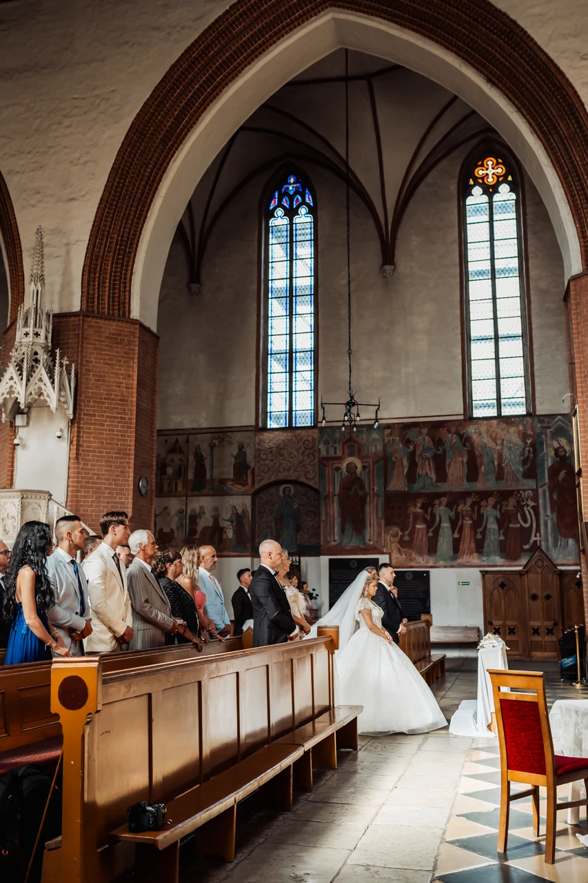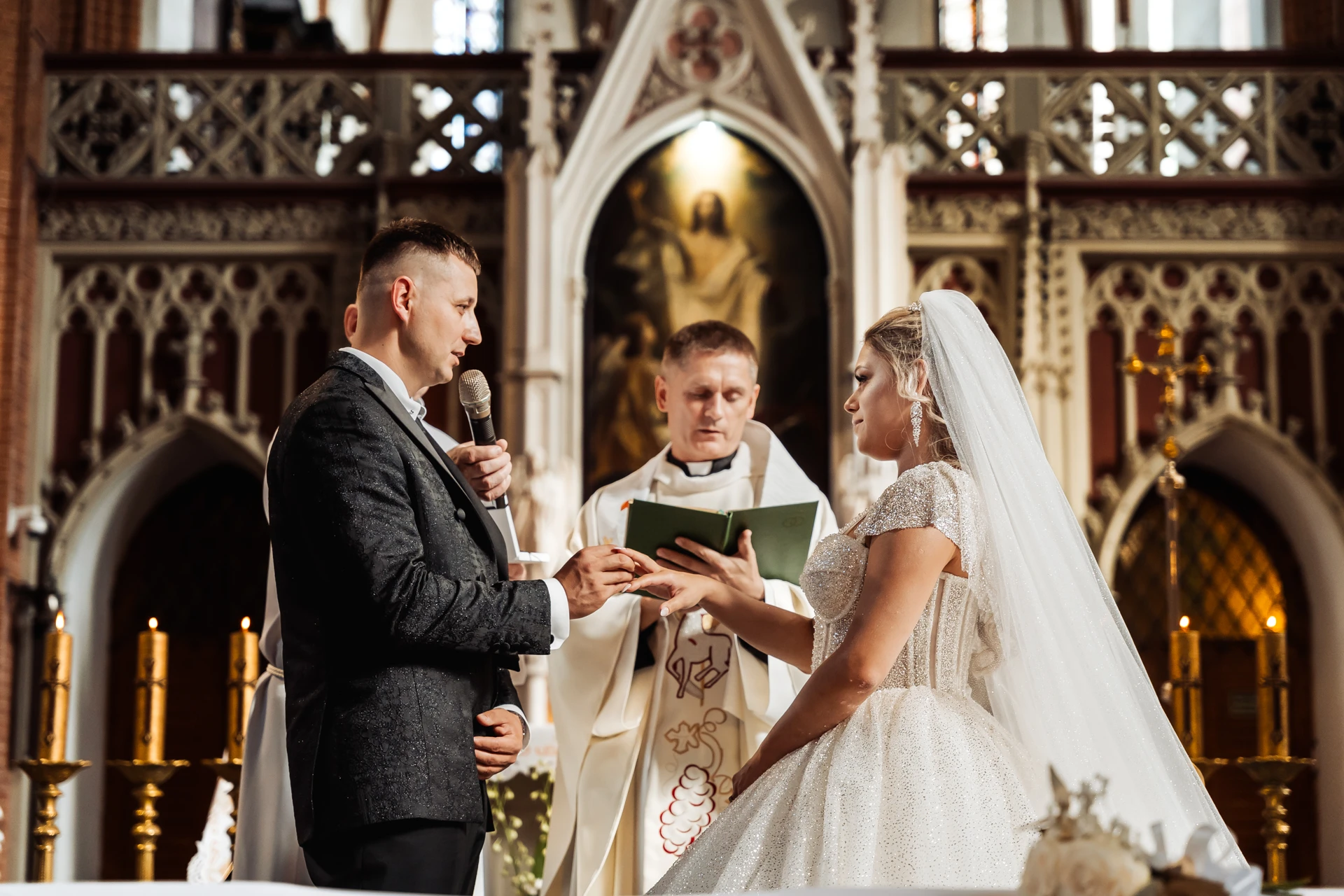 Kościół wypełniał delikatny blask świec i subtelna muzyka. Gdy Patrycja wkroczyła do świątyni, zapadła cisza. Patryk patrzył na nią, jakby widział ją po raz pierwszy – z podziwem i miłością.
