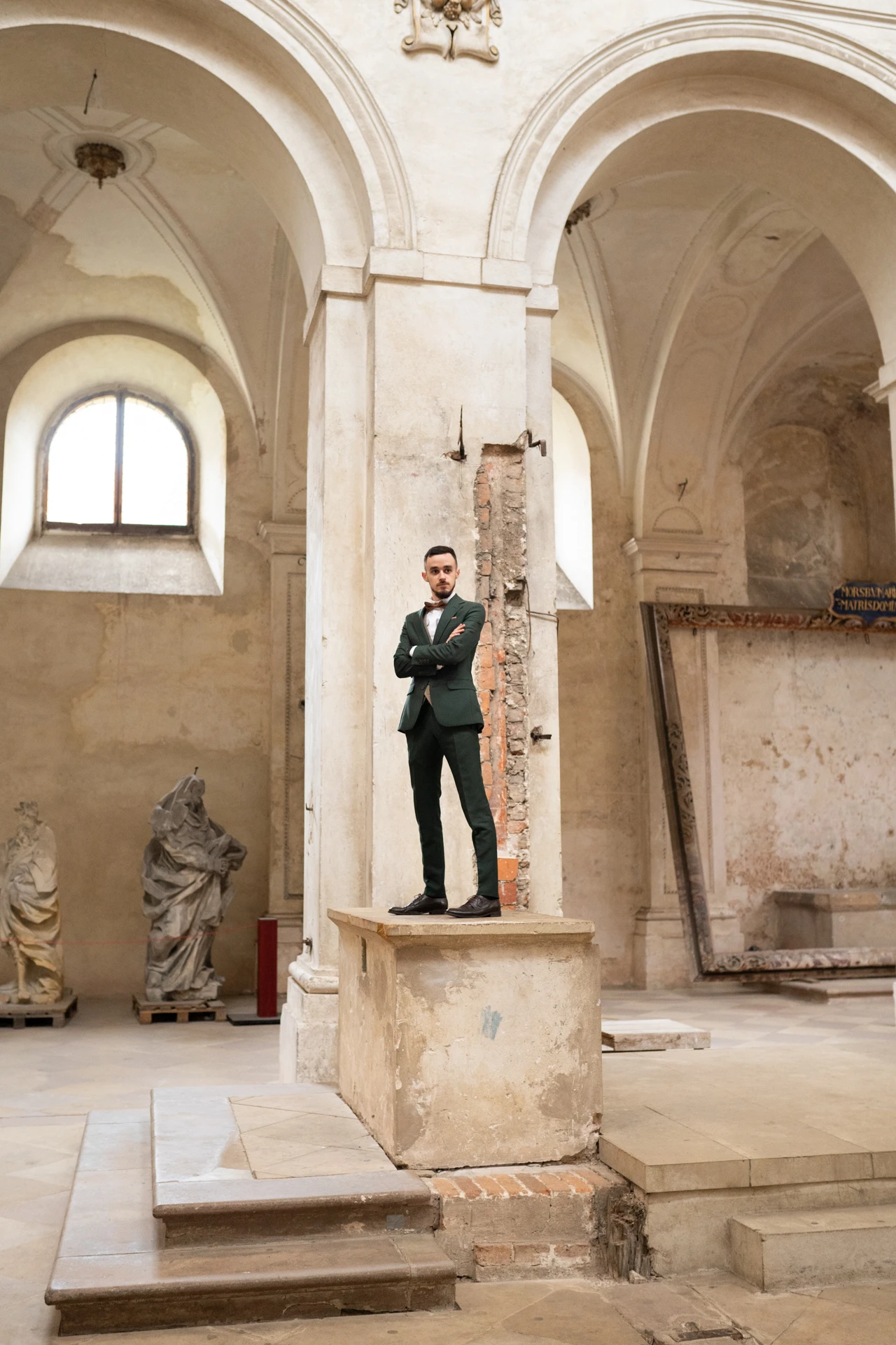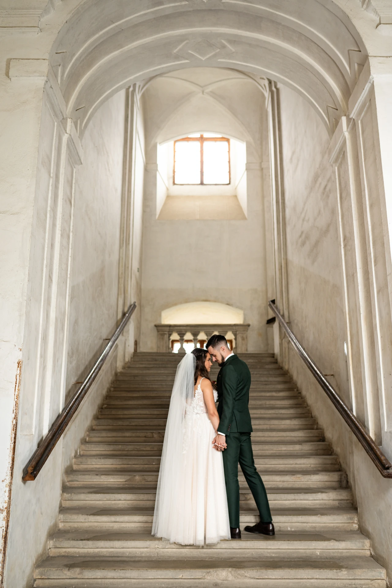 Magiczna sesja ślubna w opactwie – światło, cisza i ponadczasowa architektura. Zobacz, jak historia i miłość spotkały się w jednym kadrze!